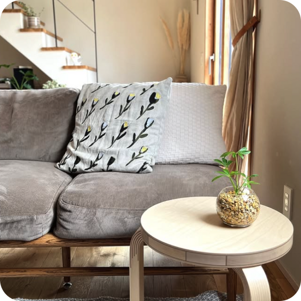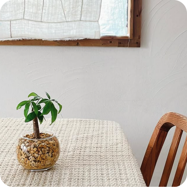 窓際に置かれた植物たちの隙間から、木漏れ日のような光が入ってきた朝。