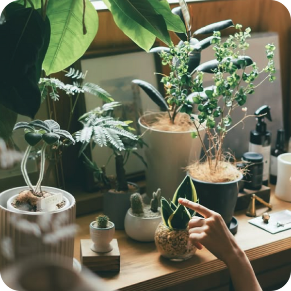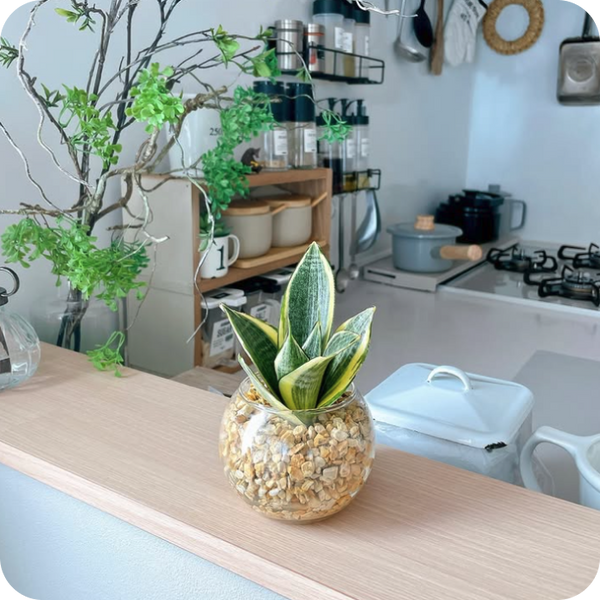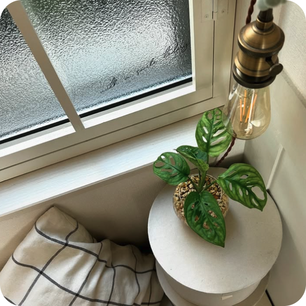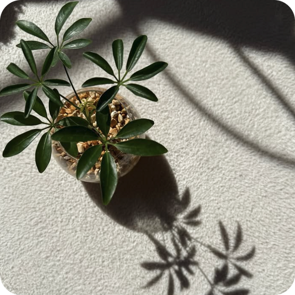 窓際に置かれた植物たちの隙間から、木漏れ日のような光が入ってきた朝。